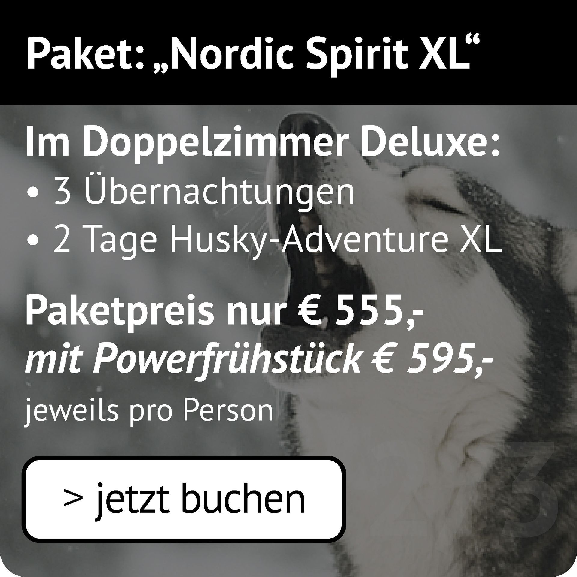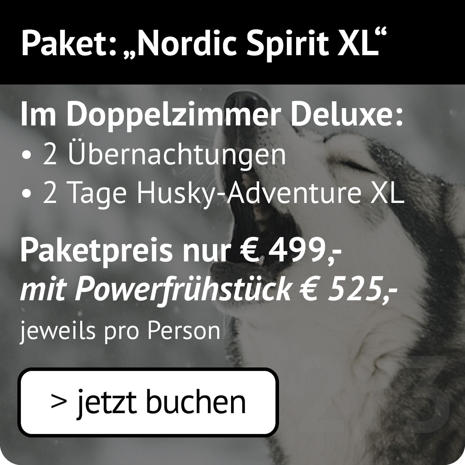 Inkl. 2 oder 3 Übernachtungen + Husky-Adventure Paket XL